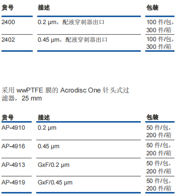 采用 wwPTFE 膜的 Acrodisc One? 針頭式過濾器