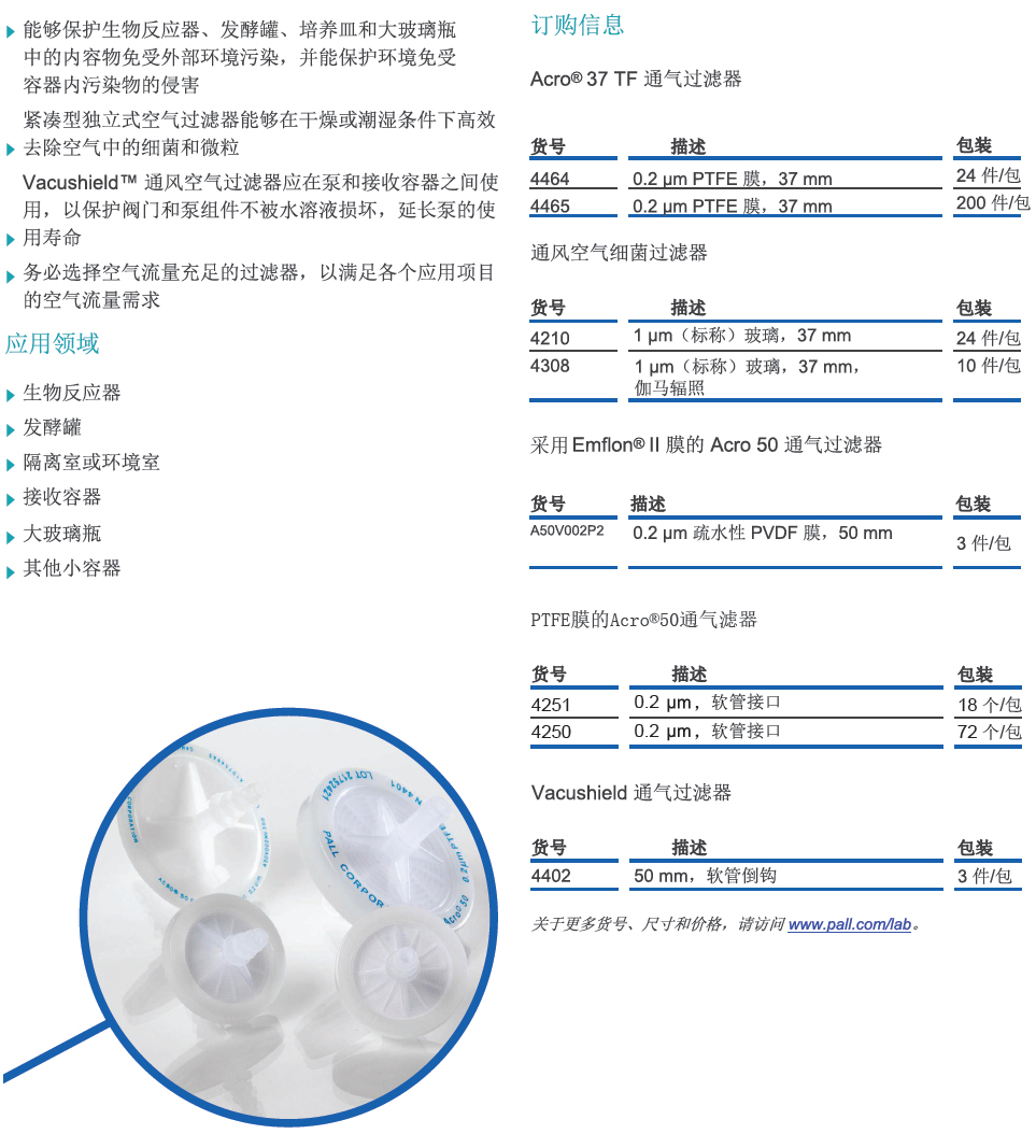 關于更多部件編號、尺寸和價格,請訪問 www.pall.com/lab