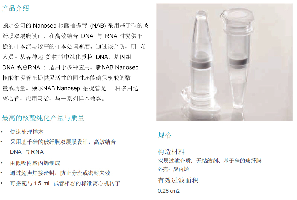 Nanosep 核酸抽提管
