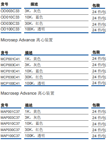 Nanosep 和 Microsep Advance 離心裝置