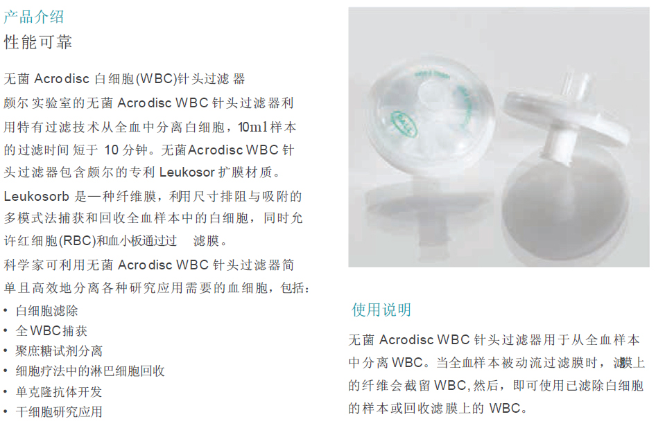 無菌AcrodiscR白細胞針頭過濾器