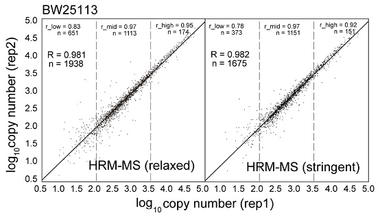 該研究使用了基于“數據非依賴性采集”(DIA)的HRM-MS方案,對大腸桿菌全蛋白質組進行了質譜測定。在兩個不同菌株的全蛋白質組兩次生物學重復測定中,實現了99.7%和99.8%的重現性,距離完美重現僅一步之遙。不僅重現性極高,其蛋白質鑒定數量也創造了大腸桿菌蛋白質組單次鑒定量的世界紀錄。 詳細全文