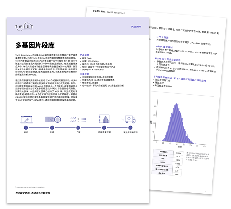 Twist Bioscience 的硅基 DNA 編寫技術支持大規模并行生產高質量寡核苷酸。利用 Twist 在 DNA 合成方面的規模效率和出眾表現,Twist 多基因片段庫 (MGF)?*為多達數十萬個長度在 301 到 500 個堿基對之間的基因片段提供了一種特別的混合形式。在高通量篩選應用中,單個片段成本可能是獲得所需數量變體的一大障礙,然而這種混合片段形式可助力高通量篩選應用,如引導編輯、基于超復雜 CRISPR 的功能篩選、肽和蛋白質工程、抗體發現和大規模并行報告基因分析 (MPRA)。