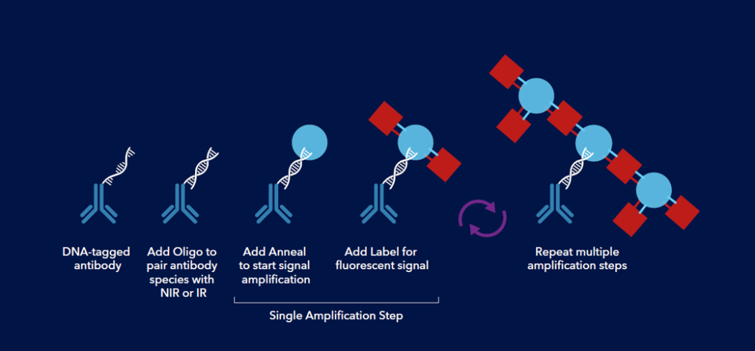 Figure 1 Stellar熒光檢測靈敏度是通過DNA與檢測抗體相連的多個信號放大步驟實現。